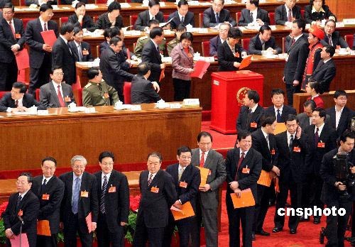 圖:人大代表排隊(duì)進(jìn)行表決和選舉