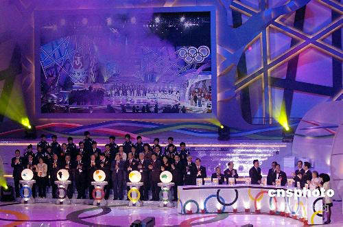 圖:香港舉行"北京奧運(yùn)倒數(shù)一百天"晚會