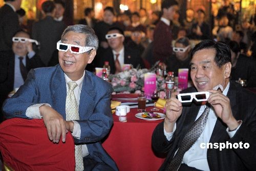 三月八日,全國人大代表、政協(xié)委員攝影聯(lián)誼會(huì)在北京舉行,兩會(huì)代表委員中的攝影界人士歡聚一堂切磋技藝。十屆全國人大常委會(huì)副委員長許嘉璐、十屆全國政協(xié)副主席李蒙,同大家戴上專用眼鏡觀看立體攝影作品圖片。中新社發(fā) 廖攀 攝