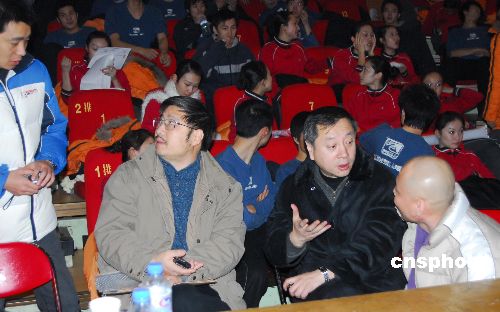 2008年中國農(nóng)歷春節(jié)將近,中央電視臺(tái)各類春節(jié)檔期的晚會(huì)節(jié)目進(jìn)入了緊張的節(jié)目審查和彩排階段。文藝中心主任朱彤(前排右二)和春晚總導(dǎo)演陳臨春(前排左二)在彩排現(xiàn)場悉心指導(dǎo)工作。中新社發(fā) 楊影懿 攝