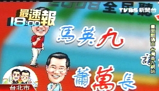 影片配音又說:“2008全民聽九萬,馬英九、蕭萬長讓您久等了!”
