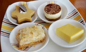 正統(tǒng)的英式下午茶的點(diǎn)心是用三層點(diǎn)心瓷盤(pán)裝盛,第一層放三明治、第二層放傳統(tǒng)英式點(diǎn)心Scone、第三層則放蛋糕及水果塔;由下往上開(kāi)回吃。至于Scone的吃法是先涂果醬、再涂奶油,吃完一口、再涂下一口!