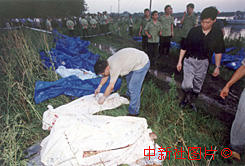 清理死難者遺體。東方 攝