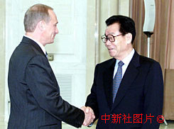 中國(guó)全國(guó)政協(xié)主席李瑞環(huán),7月18日在北京會(huì)見(jiàn)俄羅斯總統(tǒng)普京。中新社記者 滿會(huì)喬 攝