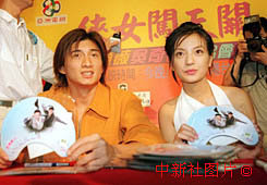 歌影視紅星趙薇、吳奇隆31日在香港出席電視劇“俠女闖天關(guān)”簽名會(huì)宣傳活動(dòng)。中新社傳真 鄧慶樂(lè)攝