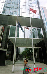 香港入境處大樓前仍降半旗,向在入境大樓縱火案中殉職的高級入境事務(wù)主任梁錦光先生致哀。中新社傳真 任海霞攝