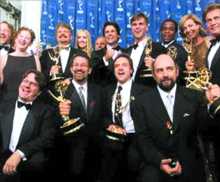 第52屆電視艾美獎(jiǎng)揭曉 “白宮”壓倒“黑道” 2000年9月12日 14:18 ![]() 破了紀(jì)錄的《白宮群英》劇組人員在艾美獎(jiǎng)?lì)C獎(jiǎng)禮上歡呼雀躍 中新網(wǎng)洛杉磯9月12日消息:第52屆電視艾美獎(jiǎng)于洛杉磯時(shí)間9月10日揭曉,《白宮群英》(The West Wing),以9項(xiàng)大獎(jiǎng)?chuàng)魯×送@18項(xiàng)提名的《人在江湖》(The Sopranos)。 《白宮群英》是以美國(guó)總統(tǒng)與其精英幕僚為主角,描寫這些人置身于權(quán)力中心的白宮,如何運(yùn)用權(quán)力與決策,應(yīng)付新聞媒體與復(fù)雜人際關(guān)系的精彩過(guò)程。 《白宮群英》還打破了之前《仁心仁術(shù)》8項(xiàng)獎(jiǎng)座的紀(jì)錄,以最佳戲劇類電視影集、最佳戲劇類男女配角、編劇、導(dǎo)演等9項(xiàng)大獎(jiǎng),再次刷新艾美獎(jiǎng)得獎(jiǎng)紀(jì)錄。 據(jù)此間媒體消息,原本大家看好的HBO電視劇《人在江湖》,在十八項(xiàng)提名中,只拿下了最佳戲劇類男主角一個(gè)大獎(jiǎng),“白宮”終于蠃得勝利,“黑道”不再橫行霸道!(完) 相關(guān)報(bào)道:艾美獎(jiǎng)?lì)C獎(jiǎng)前夕美黑人演員爭(zhēng)取公平獲獎(jiǎng)機(jī)會(huì) |