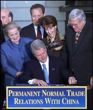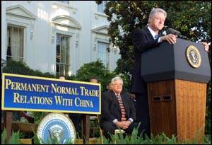 圖文:克林頓簽署PNTR法案 2000年10月11日 11:35 克林頓在多名曾為PNTR法案不斷努力的官員陪同下,正式簽署PNTR法案,為中美關系邁入一個歷史性的新里程。 克林頓在總統(tǒng)任期內完成心愿,簽署PNTR法案,他形容這是他在任期內的一大勝利。(圖據(jù)外電) 中新社華盛頓十月十日電(記者徐德金)美國總統(tǒng)克林頓今天下午在白宮南草坪舉行儀式,簽署了對華永久性正常貿易關系(PNTR)法案。由此,這項已在國會眾議院、參議院通過的法案成為法律,正式生效。 白宮說,克林頓簽署PNTR法案是美中關系的歷史性時刻,中國將向美國的商品與服務業(yè)打開市場,加強美中關系。 中、美兩國政府于去年十一月十五日在北京簽署關于中國加入世界貿易組織的雙邊協(xié)議,這份被稱作“雙贏”的協(xié)議,促進了中美兩國經(jīng)貿關系,也加快了中國邁向WTO的進程。 今年三月,克林頓向國會提交了一項關于給予中國永久性正常貿易關系地位的立法建議。此后數(shù)月,克林頓及美國聯(lián)邦政府高級官員不斷呼吁、敦促國會,盡早審議、通過PNTR案。今年五月二十四日,眾議院以二百三十七票對一百九十七票批準了PNTR案;九月十九日,參議院又以八十三票對十五票的壓倒性多數(shù)通過了該案。 該法案生效后,將結束二十年來美國國會每年審議一次對華“正常貿易關系”(一九九八年前叫“最惠國待遇”)的歷史,與中國建立永久正常貿易關系。實現(xiàn)美對華永久正常貿易關系符合世貿組織的規(guī)定,符合中美兩國人民的根本利益,有利于推動中美經(jīng)貿合作和中美關系繼續(xù)向前發(fā)展。 不過,人們注意到克林頓今天簽署的法案,包含了干涉中國內政、損害中國利益的內容。中方已向美方表明了堅決反對的嚴正立場。 美國方面稱,過去二十年,美中貿易已從無關緊要的水平提高到每年增長一百四十億美元的水平。今后,美國產(chǎn)品將更容易進入一個超過十二億人口的市場。 (完) |