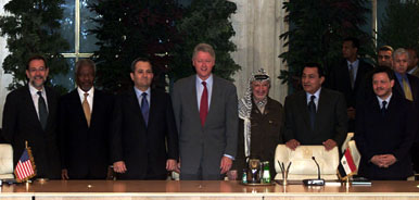 圖文:巴以終于達成停火協(xié)議 2000年10月18日 08:36 ![]() 在埃及舉行的巴以峰會于十七日結束,簽訂了;饏f(xié)議;各與會領袖會后拍大合照。(左起)歐盟特使索拉納、聯(lián)合國秘書長安南、以色列總理巴拉克、美國總統(tǒng)克林頓、巴勒斯坦領袖阿拉法特、埃及總統(tǒng)穆巴拉克及約旦國王阿卜杜拉。 中新網(wǎng)北京10月18日消息:美國總統(tǒng)克林頓周二宣布,以色列和巴勒斯坦終于達成;饏f(xié)議,同意停止沖突、成立委員會調查引發(fā)沖突的原因,及積極尋找恢復和平談判的辦法。 以色列總理巴拉克及巴勒斯坦領袖阿拉法特于峰會結束時簽署該份協(xié)議,但未發(fā)表講話。 克林頓在為期兩日的峰會結束時宣布,巴以雙方同意發(fā)表公開聲明,明確要求停止沖突,實時恢復到?jīng)_突前的局面,包括以色列撤銷對西岸及加沙的軍事封銷和重新開放位于加沙的巴勒斯坦機場。 克林頓表示,美國以及聯(lián)合國秘書長安南將聯(lián)同巴以雙方組成實地調查委員會調查這次的沖突,及研究避免事件重演的方法。 他續(xù)說,以色列總理巴拉克及巴勒斯坦領袖阿拉法特同意美國在兩周內,就如何恢復和談咨詢兩位領袖的意見。 克林頓在達成;饏f(xié)議、結束二十日來的激烈沖突后,已于周二啟程返美。這次巴以之間的血腥沖突釀成至少一百零三人死亡,差不多全為巴勒斯坦人。 據(jù)悉巴以兩位領袖始終互不信任,未在峰會上進行過面對面的會談。 以色列代外長本阿米表示,以色列對協(xié)議內容感到滿意,他們出席峰會的目標已經(jīng)達到。 巴勒斯坦計劃部長沙瑟表示,阿拉法特勉強地同意克林頓的聲明;阿拉法特認為幾個重要事項的內容含糊,巴勒斯坦不感到高興,但他們希望能夠藉此保護人民的性命。 阿拉法特表示,他期望以色列能夠嚴格執(zhí)行;饏f(xié)議。 在巴以峰會在埃及結束之際,數(shù)百名巴勒斯坦人在加沙向以色列邊境擲石及燃燒彈,激起以色列還火,造成十名示威者受傷。 在伯利恒街頭,數(shù)千名巴勒斯坦人游行,哀悼被以軍擊斃的一名十三歲男童。 部分蒙面青年焚燒以色列及美國國旗,呼叫“真主偉大”的口號,有多達一萬五千人在送葬行列中揮動橫額及巴勒斯坦自治區(qū)旗。 以色列一名高級官員周二還表示,除了美國總統(tǒng)克林頓宣讀的書面聲明外,巴以雙方還就安全問題達成了一項共識,但內容將會保密。 |