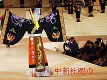 在廣西南寧舉行的國(guó)際民歌藝術(shù)節(jié)上,大型服飾晚會(huì)“聚焦綠城.2000”十九日晚在南寧市體育館舉行,由兩百多名中外模特展示了古今中外經(jīng)典服飾作品。圖為中國(guó)歷代服飾中的秦始皇服飾。中新社記者 錢(qián)興強(qiáng) 攝