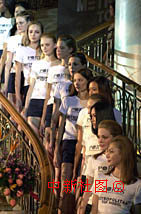 ![]() 正在北京參加世界超級模特大賽的中國和東歐模特小姐,受十一月京城寒冷天氣的影響,不得不呆在酒店里等候比賽。中新社記者 賈國榮 攝 ![]() 一群靚麗的少女十一月聚集北京瑞迪升國賓酒店,以美爭奪超級模特大賽的八十萬美金桂冠。中新社記者 賈國榮 攝