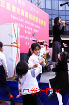 圖片:三盞燈社區(qū)迎回歸活動(dòng)吸引小朋友 2000年12月18日 16:09 ![]() 澳門三盞燈社區(qū)從16日開始的迎慶回歸一周年活動(dòng),吸引了很多小朋友。中新社記者 滿會(huì)喬攝