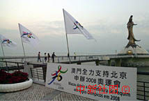 圖文:澳門新口岸布滿支持北京申辦2008年奧運(yùn)會的旗幟 2000年12月19日 11:53 ![]() 澳門新口岸海濱布滿支持北京申辦2008年奧運(yùn)會的旗幟。澳門新口岸海濱布滿支持北京申辦2008年奧運(yùn)會的旗幟迎風(fēng)飄揚(yáng),為在此間迎接澳門回歸一周年慶典活動增添熱鬧氣氛。中新社傳真洪少葵攝