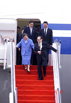 江澤民和夫人乘專機(jī)抵澳機(jī)場 2000年12月19日 18:52 ![]() 國家主席江澤民和夫人王冶坪19日下午乘專機(jī)抵達(dá)澳門機(jī)場,出席澳門回歸祖國一周年慶典活動(dòng)。中新社傳真 滿會(huì)喬攝