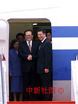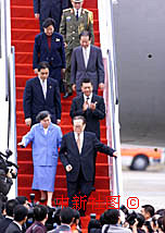 ![]() 何厚鏵陪江澤民與王冶坪下機(jī).國家主席江澤民與夫人王冶坪在澳門特區(qū)行政長官何厚鏵的陪同下,于19日下午乘專機(jī)抵達(dá)澳門機(jī)場,出席澳門回歸祖國一周年慶典活動(dòng),江澤民主要陪同人員錢其琛等同機(jī)抵達(dá)。中新社傳真 滿會(huì)喬攝 |