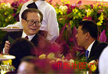 圖片:江澤民同何厚鏵親切交談 2000年12月19日 21:16 ![]() 國(guó)家主席江澤民在慶祝澳門回歸一周年晚宴上同行政長(zhǎng)官何厚鏵親切交談。中新社傳真 宗金柱 攝
