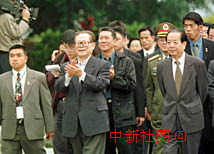 新聞組照:江澤民、錢(qián)其琛、何厚鏵參觀澳門(mén)大炮臺(tái) 2000年12月20日 19:03 ![]() 國(guó)家主席江澤民、國(guó)務(wù)院副總理錢(qián)其琛、澳門(mén)特別行政區(qū)行政長(zhǎng)官何厚鏵20日下午參觀澳門(mén)大炮臺(tái)。中新社傳真 滿會(huì)喬 攝 ![]() 國(guó)家主席江澤民、國(guó)務(wù)院副總理錢(qián)其琛、澳門(mén)特別行政區(qū)行政長(zhǎng)官何厚鏵20日下午參觀澳門(mén)大炮臺(tái)時(shí),聽(tīng)到游客問(wèn)候后高興回應(yīng)。中新社傳真 滿會(huì)喬 攝