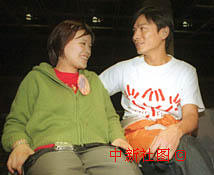 前中國(guó)國(guó)家女子體操運(yùn)動(dòng)員桑蘭12月20月在香港出席“展能顯藝飛躍千禧”記者會(huì),與劉德華共歡談。中新社傳真鄧慶樂(lè)攝