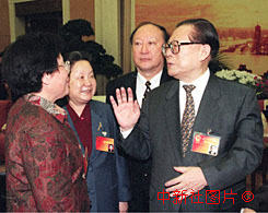 江澤民主席到全國人大上海代表團參加小組討論 2000年3月8日 08:33 ![]()