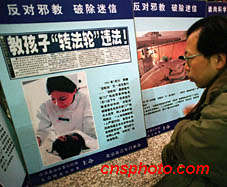 以“反對邪教、維護穩(wěn)定、崇尚科學、傳播文明”為主題的“青年文明社區(qū)反邪教行動”,二月在北京市全面啟動,揭批“法輪功”的圖片展在北京圖書大廈吸引讀者觀看。中新社圖 陸云 攝