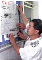原上海市法輪功輔導(dǎo)站站長(zhǎng)夏寧華醒悟后主動(dòng)參加張貼揭批法輪功的宣傳材料。