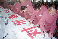 悔悟的法輪功練習者在“反對邪教、保障人權(quán)”百萬公眾簽名活動中,在百米長幅上簽下自己名字,以示與法輪功徹底決裂。