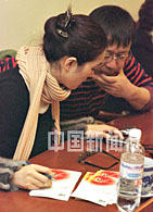 全國(guó)政協(xié)委員、著名影星鞏俐和姜文,周日參加政協(xié)文藝組討論會(huì)間隙研究新影片。中新社記者 劉可耕 攝