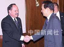 國務(wù)院副總理錢其琛十九日在紐約人壽保險公司會見了美國工商金融界人士。美國商會負(fù)責(zé)人安德爾代表工商金融界歡迎錢其琛訪美,并表示,美工商金融界堅定支持發(fā)展對華經(jīng)貿(mào)關(guān)系,希望美中關(guān)系在新世紀(jì)得到更大發(fā)展。中新社圖 陳建 攝