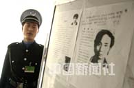 北京城鄉(xiāng)各處二十一日張貼公安機關(guān)簽發(fā)的通輯令,捉拿石家莊系列爆炸案的嫌犯靳如超,另一名為北京市通輯的第一號逃犯。中新社記者 賈國榮 攝