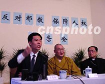 圖文:中國(guó)反邪教協(xié)會(huì)代表團(tuán)訪法 2001年3月29日 10:30 ![]() 圖為:圖為司馬南在作報(bào)告 中新社傳真 蔚中攝 中國(guó)反邪教協(xié)會(huì)代表團(tuán)三月二十四日下午在巴黎作“反對(duì)邪教保障人權(quán)”專題報(bào)告會(huì),揭露“法輪功”反人權(quán)、反社會(huì)、反科學(xué)的邪惡本質(zhì),受到中國(guó)旅法留學(xué)生的歡迎。 中國(guó)反邪教協(xié)會(huì)代表團(tuán)由中國(guó)天主教愛(ài)國(guó)會(huì)主席、中國(guó)反邪教協(xié)會(huì)副理事長(zhǎng)傅鐵山主教,中國(guó)佛教協(xié)會(huì)副會(huì)長(zhǎng)、中國(guó)反邪教協(xié)會(huì)副理事長(zhǎng)圣輝法師,中國(guó)反邪教代表團(tuán)團(tuán)長(zhǎng)、中國(guó)科技館館長(zhǎng)王渝生教授和中國(guó)反邪教協(xié)會(huì)理事、中國(guó)科普作家協(xié)會(huì)副理事長(zhǎng)司馬南等組成。 |