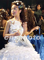 香港著名服裝設(shè)計師尹泰尉先生,一日晚在京舉行個人專場時裝發(fā)布會,特邀參加此次展示的少女模特,為展示帶來青春浪漫的氣氛。中新社記者 錢興強 攝