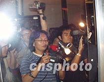 美國駐華使館原定四月三日晚十時在海口文華大酒店舉行記者招待會,延至四日凌晨一時四十分宣布取消。圖為美國駐華大使館武官及使領館人員在文華大酒店電梯口出現(xiàn)時,被現(xiàn)場中外記者追訪。中新社記者 莫成雄 攝