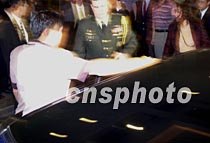 美國駐華使館官員席樂高等人七日晚十時許在?谖娜A大酒店乘坐中方安排的車輛,第三次與美國軍用偵察機(jī)機(jī)組人員見面。中新社記者 賈國榮 攝