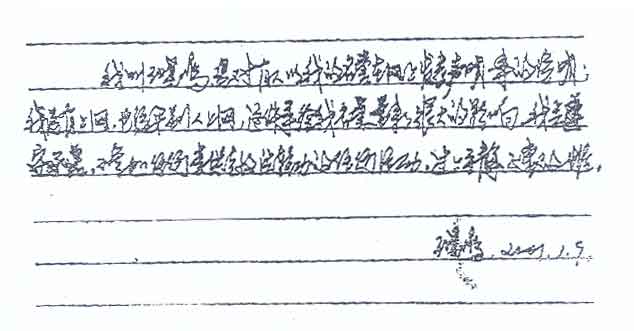 王曉鳴針對(duì)“明慧網(wǎng)”謠言的聲明 2001年4月9日 15:50 ![]() "法輪功"網(wǎng)站"明慧網(wǎng)"肆意編造,不斷刊登一些所謂原"法輪功"練習(xí)者對(duì)其脫離"法輪功"組織反悔的"聲明"。原武漢市"法輪功"輔導(dǎo)總站副站長(zhǎng)王曉鳴得知"明慧網(wǎng)"刊登了她的一份所謂"聲明",非常憤慨,她表示:她沒(méi)有上網(wǎng)發(fā)表聲明,也沒(méi)有讓別人上網(wǎng)發(fā)表聲明。她指出,這完全是虛假和可恥的行為。 為澄清事實(shí)、恢復(fù)自己的名譽(yù),王曉鳴寫(xiě)下了一書(shū)面聲明,全文如下: 我叫王曉鳴,現(xiàn)對(duì)有人以我的名譽(yù)在網(wǎng)上發(fā)表聲明一事的說(shuō)明:我沒(méi)有上網(wǎng),也沒(méi)要?jiǎng)e人上網(wǎng),這件事給我名譽(yù)帶來(lái)了很大的影響,我會(huì)遵守承諾,不參加任何李洪志法輪功的任何活動(dòng),過(guò)上平靜正常的生活。 王曉鳴 2001年1月9日 |