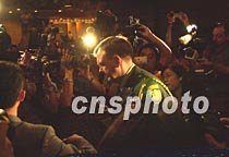 美國(guó)駐華使領(lǐng)館官員席樂高八日凌晨二時(shí)許在?谖娜A酒店出席海南省外事僑務(wù)辦公室舉行的新聞發(fā)布會(huì)后,面對(duì)中外記者包圍追問與機(jī)組人員第三次見面等情況,再也一言不發(fā)。中新社記者 賈國(guó)榮 攝