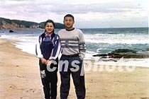 中國飛行員王偉與夫人阮國琴一九九七年二月十六日在海岸合影。(資料)中新社圖