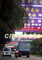 海南省會(huì)海口市如今是美國駐華使館官員一行和美國軍用偵察機(jī)機(jī)組人員所在之地,市區(qū)主要街道椰林綠葉與鮮艷的橫幅廣告十分奪目。中新社記者 賈國榮 攝