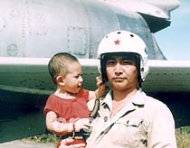 中國飛行員王偉與愛子在自己的飛機(jī)前留影。(資料圖片)作者:龍運(yùn)河