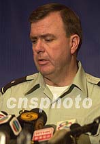 美國駐華使館武官席樂高準(zhǔn)將十一日晚十時(shí)四十分在?谖娜A大酒店新聞發(fā)布會上說,他已同中方見面并得到釋放機(jī)組人員的細(xì)節(jié)和具體要求,美方需要研究考慮。中新社記者 賈國榮 攝
