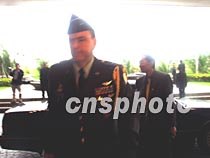 美國駐華使館武官席樂高準(zhǔn)將十二日凌晨秘密離開?谖娜A大酒店,送別美方機組人員后又回到酒店。中新社記者 莫成雄 攝