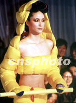 中國名模陳娟紅,日前在北京舉辦的第九屆中國國際服裝服飾博覽會上,展示“南極人”羽絨服飾作品。中新社記者 錢興強 攝
