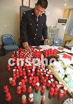 北京西誠警方二十一日夜“嚴(yán)打零點(diǎn)行動”中搗毀一個私刻公章窩點(diǎn),當(dāng)場收繳公章二百余枚。中新社記者 宋吉河 攝