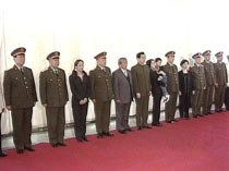 中共中央政治局常委、中國國家副主席、中央軍委副主席胡錦濤(左六)率領(lǐng)軍方最高層領(lǐng)導(dǎo),二十四日在北京會見“?招l(wèi)士”王偉烈士的親屬并合影留念。