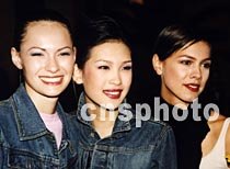 “質(zhì)感沙宣”2001上海國際時裝模特大賽五月二日晚落下帷幕。圖為冠軍女模特--巴西的卡琳娜·愛澤·安德魯(左一)、亞軍女模特--挪威的瑪瑞特·海倫娜·托雷森(右一)、季軍女模特--中國上海的佟晨潔(中)賽后合影。中新社圖 姜煜 攝