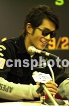香港影星古天樂出席錄像作品展。香港影星古天樂五月三日出席《無限投射2001》作品展記者會。中新社傳真 任海霞攝
