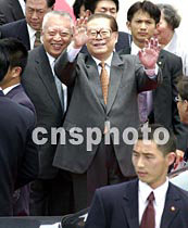 圖:江澤民抵達(dá)香港 2001年5月8日 13:35 ![]() 中國(guó)國(guó)家主席江澤民5月8日中午乘專機(jī)抵達(dá)香港機(jī)場(chǎng),參加“2001年《財(cái)富》全球論壇”,登車前向采訪的記者招手致意。中新社傳真任晨鳴攝