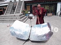 圖:西藏僧人使用太陽灶煮開水
