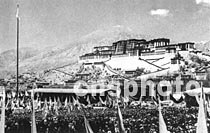一九五六年四月二十二日,西藏自治區(qū)成立,民主改革開始。圖為拉薩布達拉宮前舉行的西藏自治區(qū)成立大會。(輝煌五十年大事回顧12)