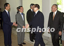 江澤民與特區(qū)主要官員握手 2001年5月9日 16:09