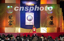 9日晚上在香港舉行的《財富》全球論壇晚宴上,世界各地商人名流匯集,聽取泰國總理塔信介紹泰國經濟的發(fā)展情況。中新社傳真 洪少葵 攝